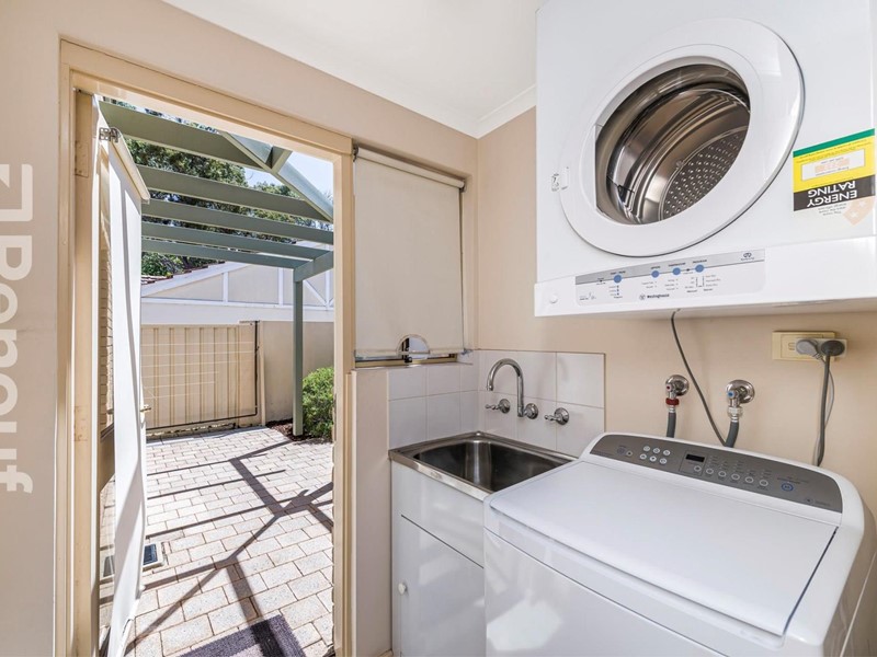 With not a step in sight, this spacious (91sqm), private and secure villa, is located in a complex of only 7 units, close to the Peace Memorial Rose Garden. For those who don’t drive, it is just 120m from the Stirling Highway bus route, and 600m to the Taylor Road IGA (450m to the now under construction Woolworths store, behind the Captain Stirling Hotel).